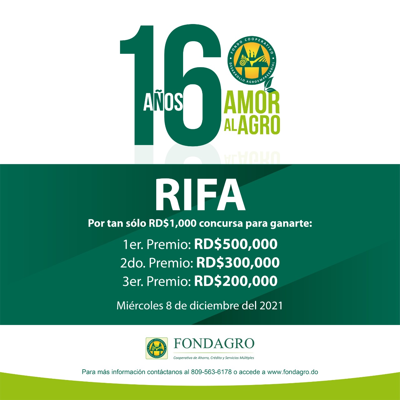 RIFA AMOR AL AGRO Participa y gana en nuestra proxima rifa, que tendra lugar en la Junta Agroempresarial Dominicana , el 8 de diciembre del 2021. Registrada por Pro Consumidor bajo el numero CRS-0059/2021